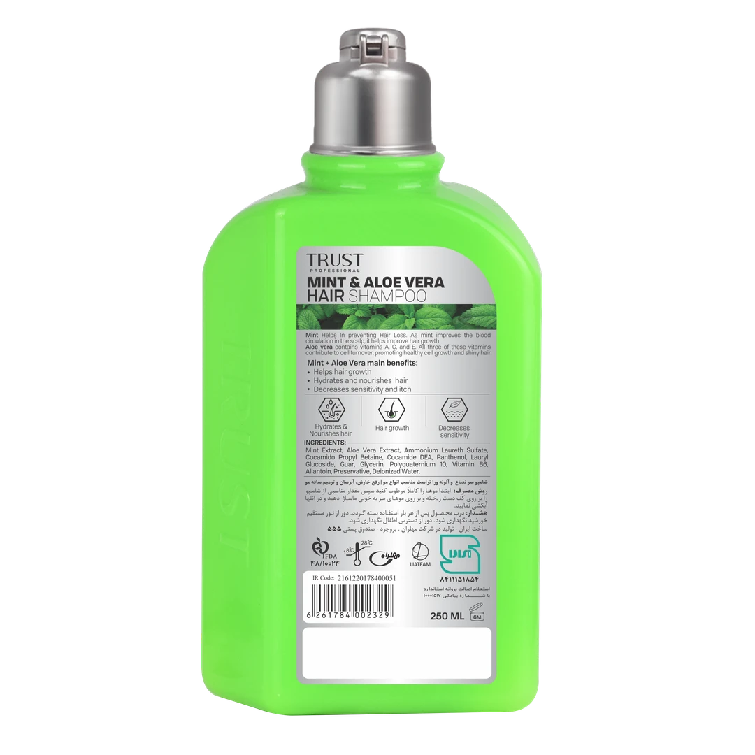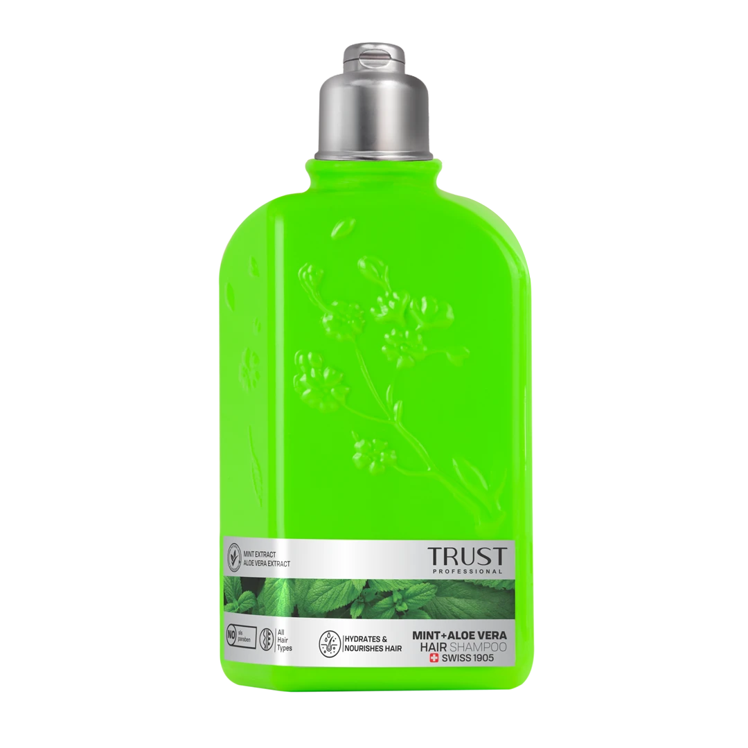 شامپو سر نعناع و آلوئهورا تراست، با وجود عصاره نعناع در ترکیبات خود، خشکی و خارش پوست سر را برطرف کرده و با داشتن خواص ضدباکتریایی و ضدقارچی، از بروز قارچهای ایجادکننده شوره جلوگیری میکند. همچنین آلوئهورا موجود در این محصول، ضمن آبرسانی پوست سر، موجب تغذیه و تقویت موها با ویتامینهای B12، E و C میشود.