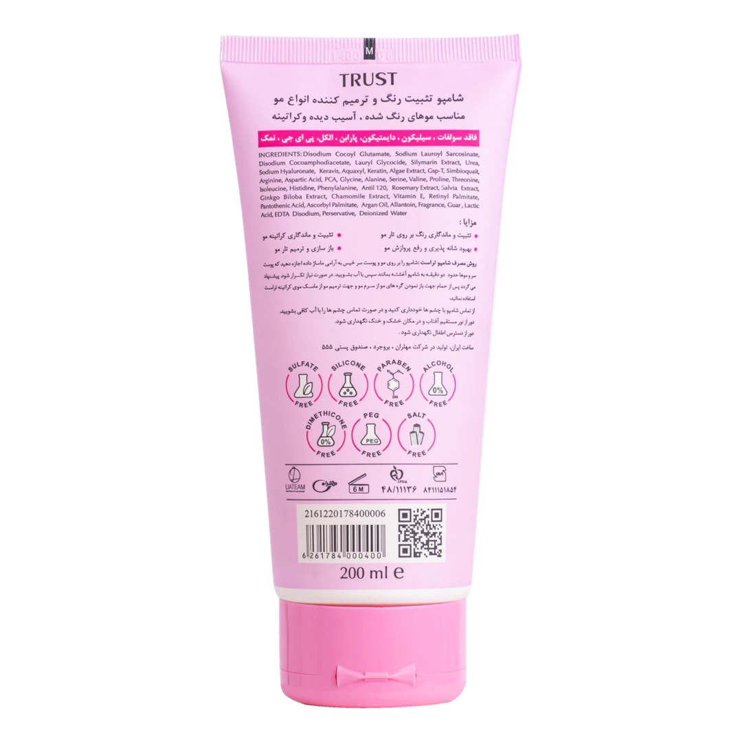 برای رسیدن به نتایج بهتر توصیه میشود همراه با این شامپو از ماسکهای تخصصی تراست نیز استفاده نمایید.
