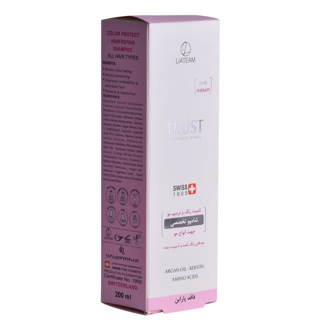 شامپوهای سری پروفشنال تراست، همگی از نظر فرمولاسیون و اثربخشی مطابق با آخرین استانداردهای اتحادیه اروپا هستند و تحت لیسانس دانشگاه لوزان سوییس تولید شدهاند.