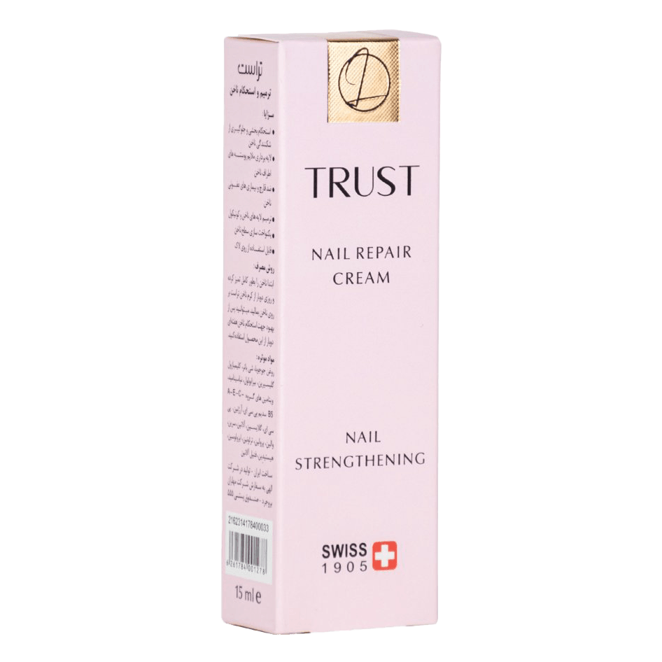 همانطور که پوست و مو به مراقبت احتیاج دارند ناخنهای دست و پا نیز از این قاعده مستثنی نیستند. کرم ترمیم کننده ناخن تراست از ریشه ریشه شدن ناخن جلوگیری میکند. کوتیکول به قسمت سفید رنگ در ابتدای رویش ناخن که تغذیه و رشد ناخن در این قسمت انجام میشود. این محصول بهصورت کرم است که در نرم شدن و انعطاف پذیری پوستهای اطراف ناخن نقش دارد؛ همچنین از ترک خوردن و خشک شدن کوتیکول «پوستهای اطراف ناخن» جلوگیری میکند. این محصول با دارا بودن ترکیبات ضد قارچ از بروز بیماریهای قارچی در ناخن جلوگیری کرده و سلامتی را برای ناخنها به ارمغان خواهد آورد. همچنین در مدت زمان کوتاهی با ایجاد تعادل بین میزان کراتین و رطوبت ناخن، استحکام و انعطاف ناخن های ضعیف را بالا میبرد. فرمول منحصر به فرد این کرم ترمیم کننده، با پروتئینهای ناخن هماهنگ بوده و به آنها شکل و ساختمان محکمی میبخشد.