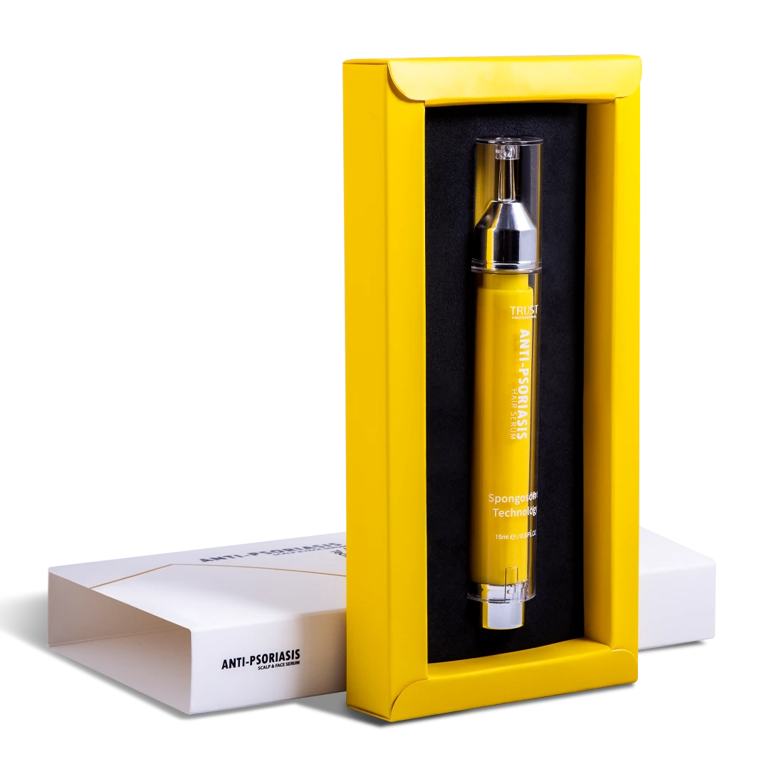 پسوریازیس نوعی بیماری خودایمنی پوستی است که راشها یا پلاکهای پوستی و ضایعاتی را در پوست سر، صورت، زانوها، بازوها و قسمت بالا تنه ایجاد کرده و به عنوان یک بیماری مزمن و بلند مدت شناخته میشود. این پلاکها دردناک هستند و با داشتن یک سیکل مشخص به مدت چند هفته تا چند ماه بروز پیدا کرده و پلاکهایی که رنگ متغیری دارند معمولا به صورت پوستههای صورتی تا قرمز بروز پیدا میکنند. این بیماری با علایم مختلفی مثل خشکی پوست با خونریزی، خارش و سوزش همراه است. پسوریازیس نواحی مختلفی از بدن را درگیر میکند که یکی از مهمترین قسمتها پوست سر و صورت است. شیوع پسوریازیس در پوست سر و صورت منجر به خشکی پوست شده و در نهایت باعث آسیب پوست و شکنندگی و ریزش موها میشود. بنابراین برای کنترل علایم پسوریازیس میبایست از محصولات مراقبتی مناسب استفاده کرد. سرم بهبود دهنده پسوریازیس تراست با بهرهگیری از تکنولوژی اسپانجوزوم به طور موثری به نفوذ و رهاسازی پیوسته ترکیبات لایهبردار و بهبود دهنده ساخت سلولهای جدید در پوست سر و صورت کمک کرده و با بهبود پلاکهای پسوریازیس و کاهش علایم بیماری، سلامت پوست را حفظ میکند. این محصول با دارا بودن ترکیبات موثره آبرسان و ضد التهاب، از خشکی پوست سر و صورت جلوگیری کرده و با مهار واسطههای التهابی، از پیشرفت عارضه جلوگیری کرده و کمک شایانی به بهبود ضایعات پسوریازیس میکند.