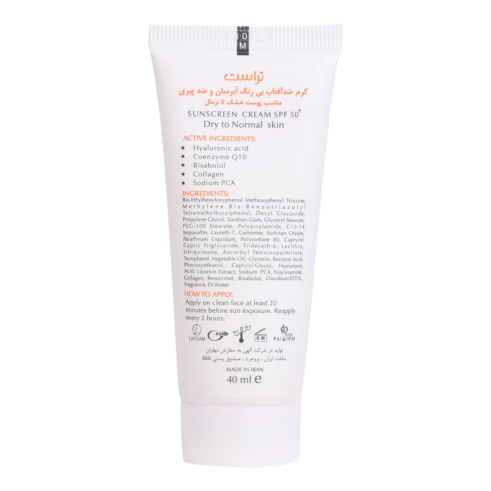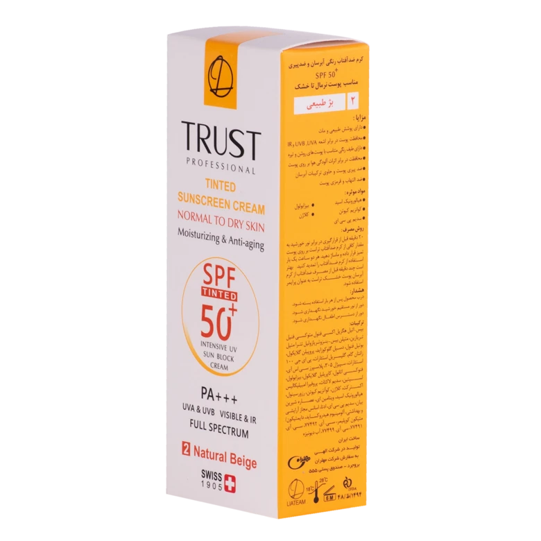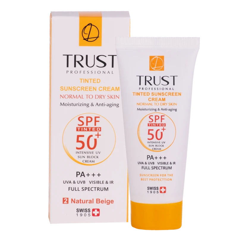 کرمهای ضدآفتاب رنگی تراست با SPF50+ از مرغوبترین و جدیدترین مواد اولیه موثره دارای حداکثر حفاظت دربرابر پرتوهای مضر خورشید ساخته شدهاند؛ این کرم با وجود بهرهمندی از بافتی سبک، دربرابر آسیبهای وارده توسط نور خورشید به خوبی از پوست محافظت و با مهار رادیکالهای آزاد از تخریب سلولهای پوستی جلوگیری میکند. همچنین با مصرف این محصول، بدون بسته شدن منافذ پوستی و ایجاد خلل در تنفس سلولهای پوستی، پوستتان آبرسانی میشود.