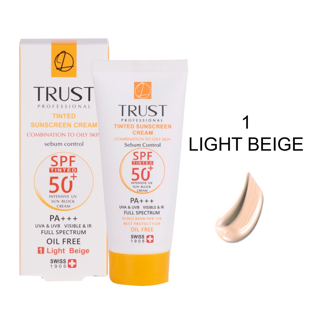 کرمهای ضدآفتاب رنگی تراست با SPF50+ از مرغوبترین و جدیدترین مواد اولیه موثره دارای حداکثر حفاظت دربرابر پرتوهای مضر خورشید ساخته شدهاند؛ این کرم با وجود بهرهمندی از بافتی سبک، دربرابر آسیبهای وارده توسط نور خورشید به خوبی از پوست محافظت و با مهار رادیکالهای آزاد از تخریب سلولهای پوستی جلوگیری میکند. همچنین با مصرف این محصول، بدون بسته شدن منافذ پوستی و ایجاد خلل در تنفس سلولهای پوستی، ضمن کنترل چربی، پوستتان آبرسانی میشود.