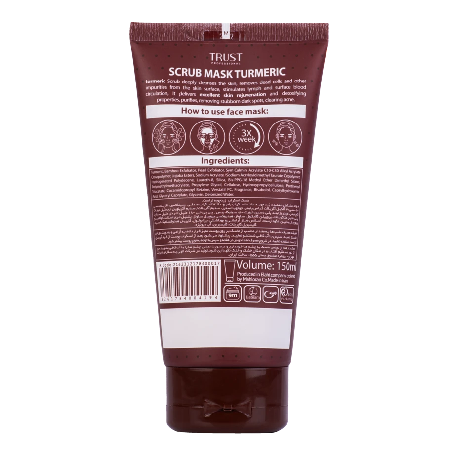 نحوه مصرف: شبها به مقدار مناسب از ماسک، روی پوست تمیز قرار داده، به آرامی و بصورت دورانی ماساژ دهید. سپس با آب کافی شستشو نمایید. پیشنهاد میشود بعد از اسکراب پوست، از کرم آبرسان تراست استفاده نمایید.