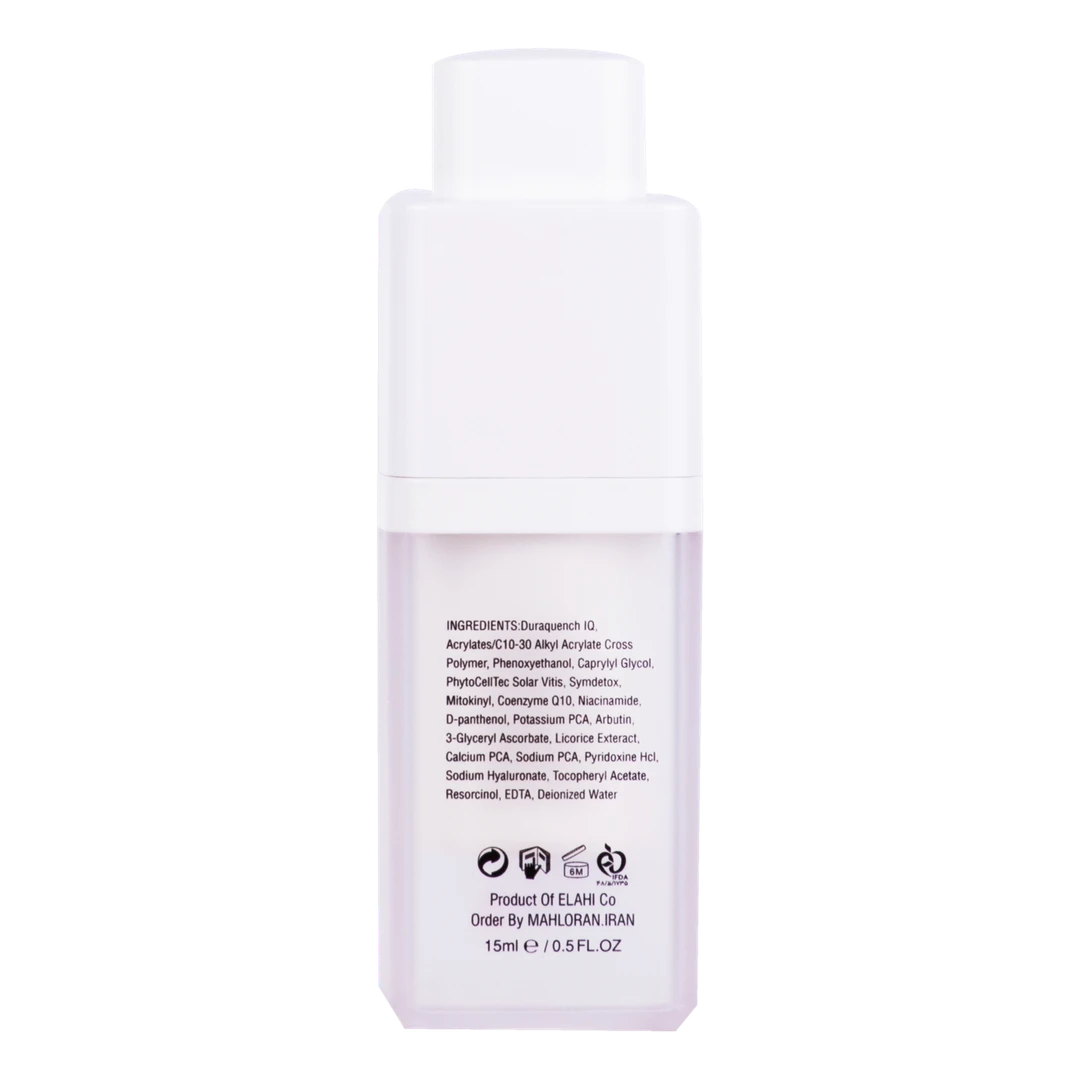 روشن کننده و برطرف کننده لک¬های پوستی با داشتن ترکیبات فعال رزورسینول، آربوتین، گلیسریل آسکوربات و عصاره شیرین بیان، و با دارا بودن ترکیبات آنتی¬اکسیدان عصاره سلول بنیادی دانه انگور، کوآنزیم کیوتن، نیاسین¬آمید، عصاره شیرین بیان و توکوفریل استات